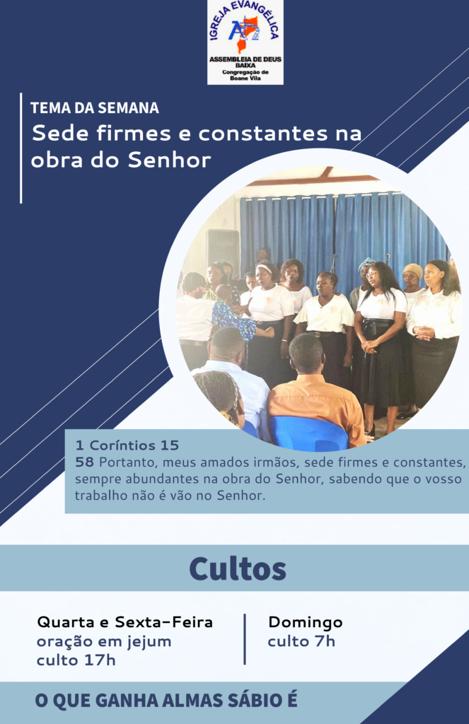 Sede firmes e constantes na obra do senhor Igreja Envagelica Assembleia de Deus - Boane / titoslanga2012@gmail.com Sede firmes e constantes na obra do senhor Read More »